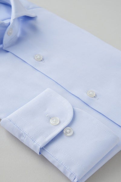 結果、光沢感・ソフト感にあふれ着心地のいい、その上洗濯後のお手入れが楽といった、相反する事象を併せ持った上質シャツに仕上がりました。