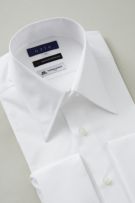 【メンズ・ドレスシャツ・ワイシャツ】ナチュラルフィット・プレミアムコットン120番手双糸・イタリア製生地・ダブルカフス・レギュラーカラー・ポケット無し