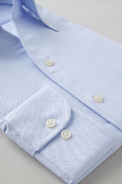 ノーネクタイ専用のややカジュアル度の高い商品でありながら、非常にエレガントなシャツです。