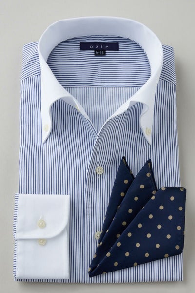 ノーネクタイ専用のややカジュアル度の高い商品でありながら、非常にエレガントなシャツです。