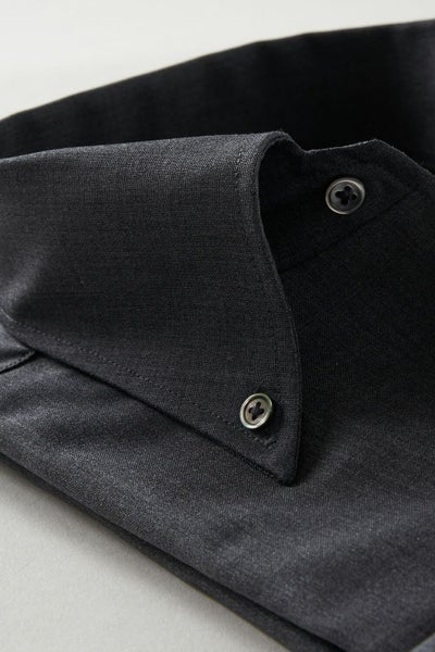 ソフトでシャツ生地とは異なるドレープ感がありながら、ハリ・コシのあるシャツの使用に最適な薄手のSUPER 120’sのメリノウールを使って80番手双糸の生地に仕上げています。