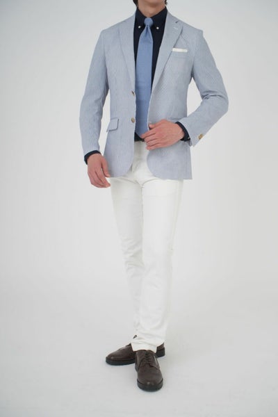 ネクタイをする場合は、ざっくりとした素材感が特徴のニットタイやフレスコタイ、リネン混のネクタイがおすすめです。