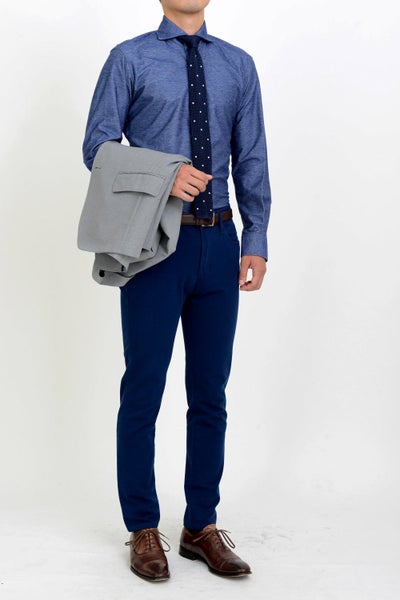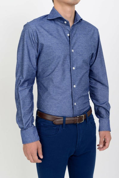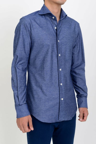カジュアルはもちろん、ジャケットやウールパンツと合わせてビジネスに、レザーのブルゾンやジーンズなどと合わせて上品カジュアルシャツとして、はたまたストレッチ性があるのでゴルフやスポーツシーンにと広範囲にコーディネイトできる人気のソフトストレッチシャツです。