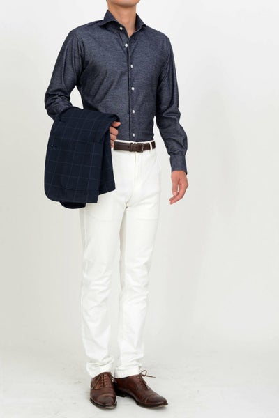 ozieのラインナップでもっともスリムなシャツです。