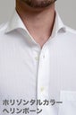 衿型は、衿の開き角度が大きく水平に近いホリゾンタルカラー(カッタウェイ)。