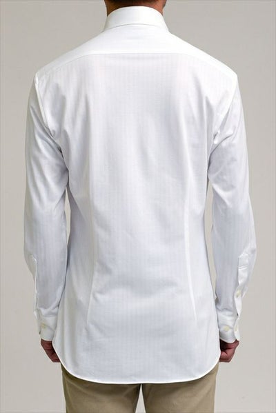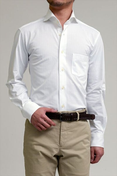 見た目はワイシャツの定番の織柄“ヘリンボーン”そのもの
