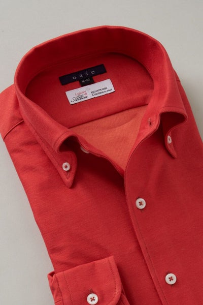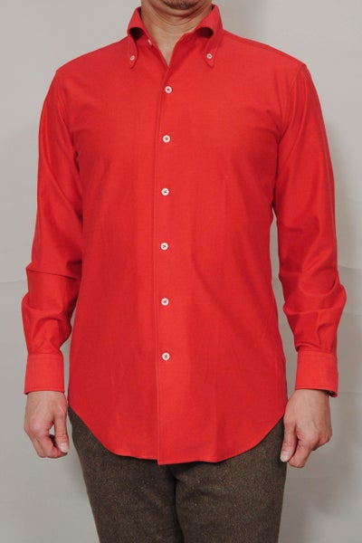 ぱっと見た目は鮮やかカラーのイタリアンカラー ボタンダウンシャツ。