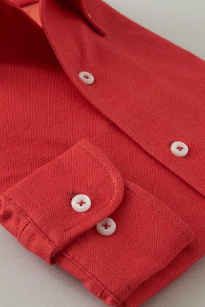 起毛感やウォーム感はフランネルそのままに、少し厚手のシャツ生地レベルの薄さで軽やか、かつソフトな肌触りのシャツに仕上げました。
