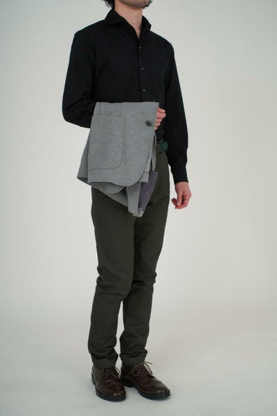 裾をパンツイン&アウトの両々で着用できるよう生産しました。