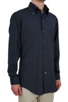 ネイビーのシャツをビジネスシーンで着用できる方は少ないかもしれませんが、アウターの色をさほど選ばないので広範囲に使えるのがネイビーシャツです。