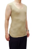 カットオフ=切りっぱなしでさらりとした着心地! ワイシャツ・Tシャツの下の着用でも透けずノーネクタイでも見えない深めのUネック仕様 抗菌防臭性に優れた万能な清涼インナー 綿混の心地よい肌ざわり クリアベージュ