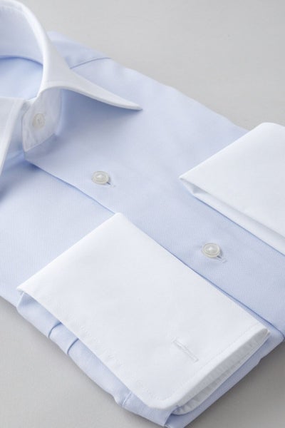 袖口を折り返してカフリンクス(カフスボタン)で留めるカフス型=ダブルカフス。