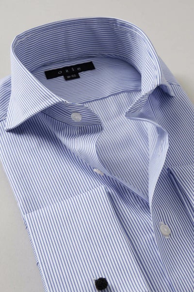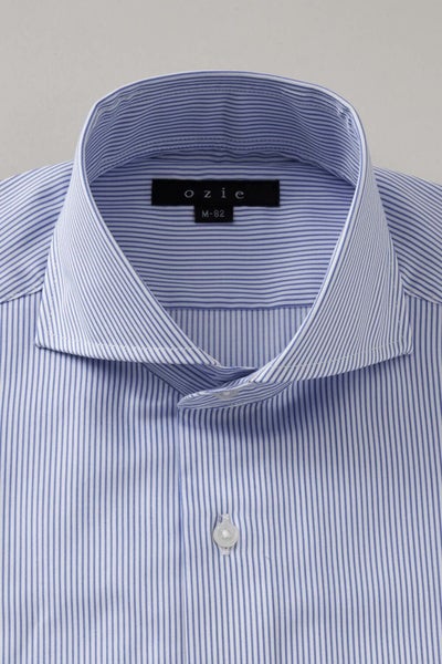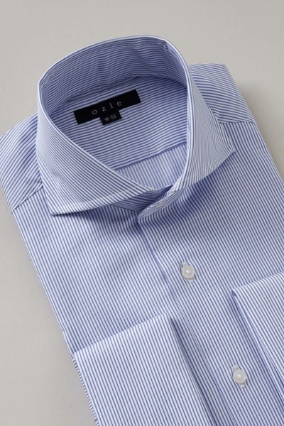 ozieではネクタイとの相性がいいホリゾンタルカラーをダブルカフス仕様にして生産。
