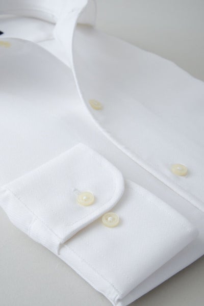 ノーネクタイ専用のややカジュアル度の高い商品でありながら、非常にエレガントなシャツです。