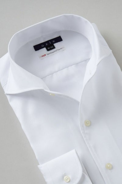 イタリアンカラーと広角なワイドカラーを掛け合わせたスタイリッシュなノーネクタイ専用の衿型です。