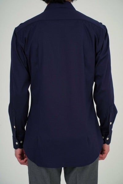 衿開きのきれいなノータイ専用オープンカラーのイタリアンワイドカラー。