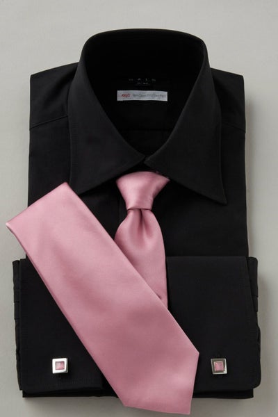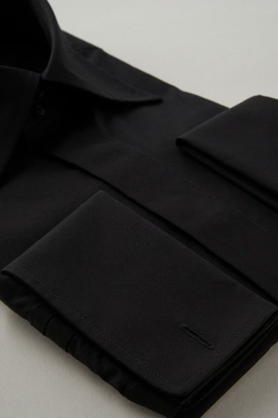 スタイリッシュかつアバンギャルドなレア仕様の黒無地ダブルカフスシャツ