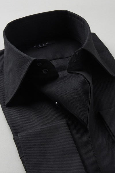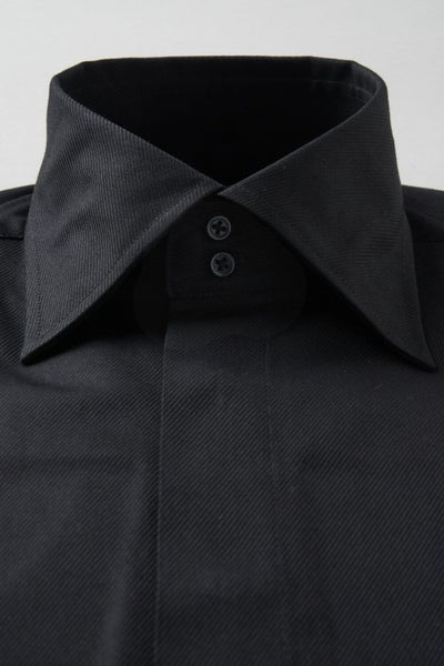 上質麺100%使用のスタイリッシュかつアバンギャルドな黒無地シャツ