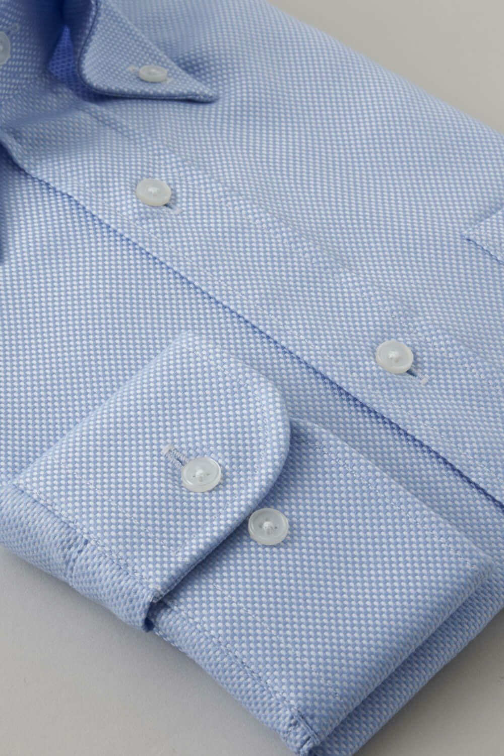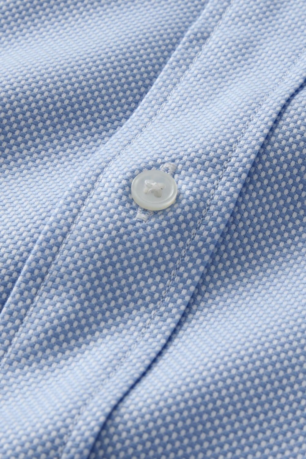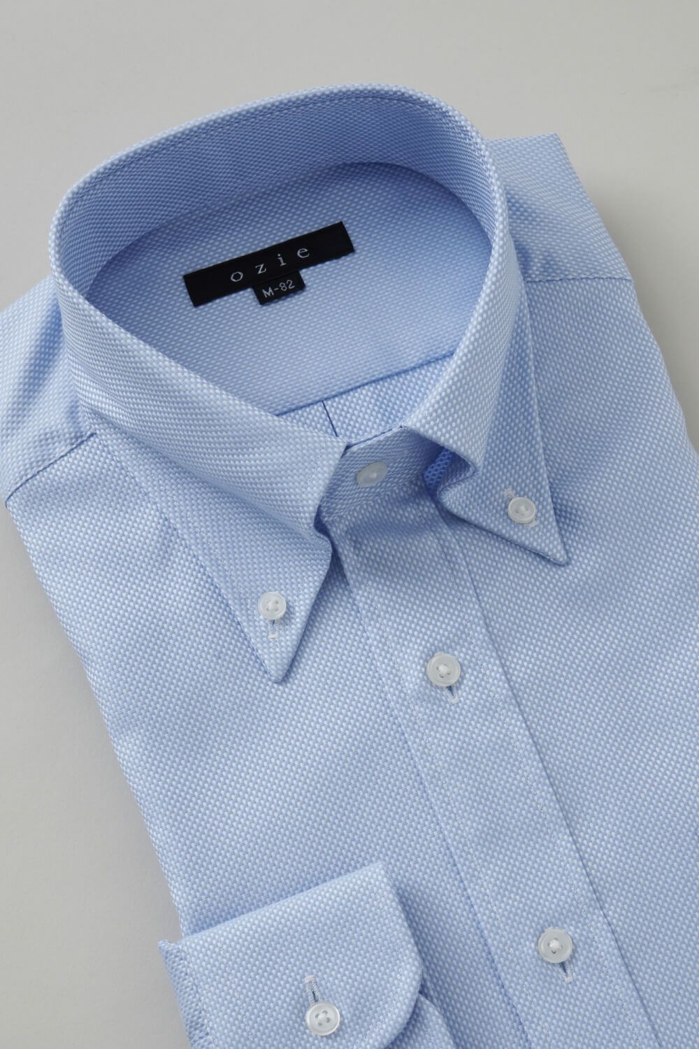 衿には衿立ち・衿開きのよいロールの美しい、大きからず小さからずの使い勝手のよいボタンダウン型を採用しました。