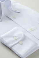 衿には衿立ち・衿開きのよいロールの美しい、大きからず小さからずの使い勝手のよいボタンダウン型を採用しました。
