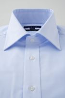 結果、光沢感・ソフト感にあふれ着心地のいい、その上洗濯後のお手入れが楽といった、相反する事象を併せ持った上質シャツに仕上がりました。