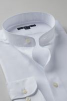 市場で減りつつある衿型で、希少性の高いスタンドカラーシャツ。