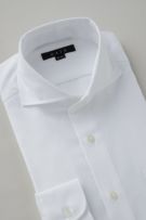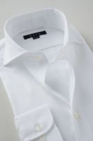 プレミアムコットン使用の綿100%に特殊な形態安定加工を施すことにより、ポリエステル混の形態安定シャツに近い防しわ性を実現しました