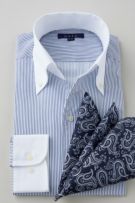 ノーネクタイ専用のややカジュアル度の高い商品でありながら、非常にエレガントなシャツです。