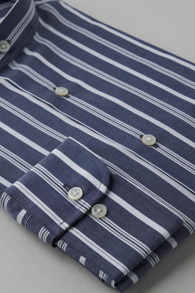 カジュアルのみならずジャケットスタイルにも最適なスタンドカラーシャツ