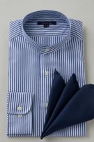 カジュアルのみならずジャケットスタイルにも最適なスタンドカラーシャツ