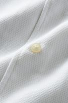 衿と前立ての裏部分がオープンカラーのように縫い目がなく、1枚の生地でつながって出来ているため、第一ボタンをはずして衿を開き気味にして着用すると衿から第一ボタンにかけてきれいなロールが出るようになっています。