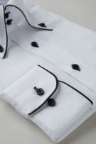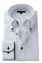 見栄え・着心地抜群+お手入れ楽々+環境に優しいエコ素材使用!?衿・カフスにサテンテープパイピングのドゥエボットーニBDシャツ