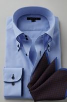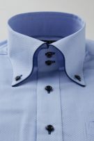見栄え・着心地抜群+お手入れ楽々+環境に優しいエコ素材使用!?衿・カフスにサテンテープパイピングのドゥエボットーニBDシャツ