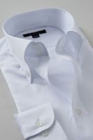 一番上のボタンを2つ縦につけることにより衿が高く、やや大きめな衿型となっています。
