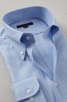 衿には衿立ち・衿開きのよいロールの美しい、大きからず小さからずの使い勝手のよいボタンダウン型を採用しました。