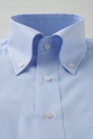後ろ身頃はボタンダウンの代表的ディティール、センターボックスプリーツにて生産しました。