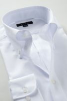 衿には衿立ち・衿開きのよいロールの美しい、大きからず小さからずの使い勝手のよいボタンダウン型を採用しました。