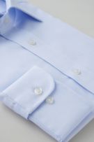 結果、光沢感・ソフト感にあふれ着心地のいい、その上洗濯後のお手入れが楽といった、相反する事象を併せ持った上質シャツに仕上がりました。