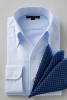 ノーネクタイ専用のややカジュアル度の高い商品でありながら、非常にエレガントなシャツです。