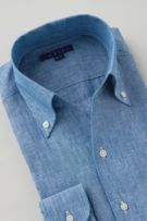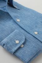リネンシャツといえどもドレスシャツ(ワイシャツ)の仕様で生産しているため、衿元しっかり!