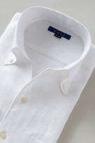 リネンシャツといえどもドレスシャツ(ワイシャツ)の仕様で生産しているため、衿元しっかり!
