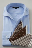 ノーネクタイ専用のややカジュアル度の高い商品でありながら、非常にエレガントなシャツです。