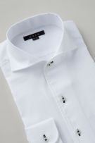 ノーネクタイ専用のややカジュアル度の高い商品でありながら、非常にエレガントなシャツです。