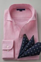 リネンシャツといえどもドレスシャツ(ワイシャツ)の仕様で生産しているため、衿元しっかり!