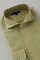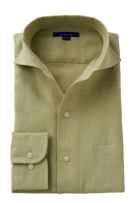 リネンシャツといえどもドレスシャツ(ワイシャツ)の仕様で生産しているため、衿元しっかり!