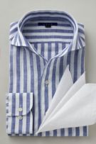 リネンシャツといえどもドレスシャツ(ワイシャツ)の仕様で生産しているため、衿元しっかり!