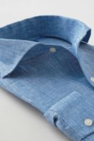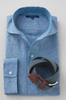 リネンシャツといえどもドレスシャツ(ワイシャツ)の仕様で生産しているため、衿元しっかり!