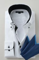 シャツでインパクトやアクセントをつけたいときにこれ以上ないノーネクタイ専用のアバンギャルドなモード系シャツ。