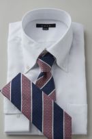 遠目からパッと見た目は普通の白無地シャツ、近づいてよく見るとクレリックという二面性をもった、小粋で珍しい白無地シャツとして生産しました。