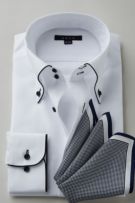 見栄え・着心地抜群+お手入れ楽々+環境に優しいエコ素材使用!?衿・カフスにサテンテープパイピングのドゥエボットーニBDシャツ